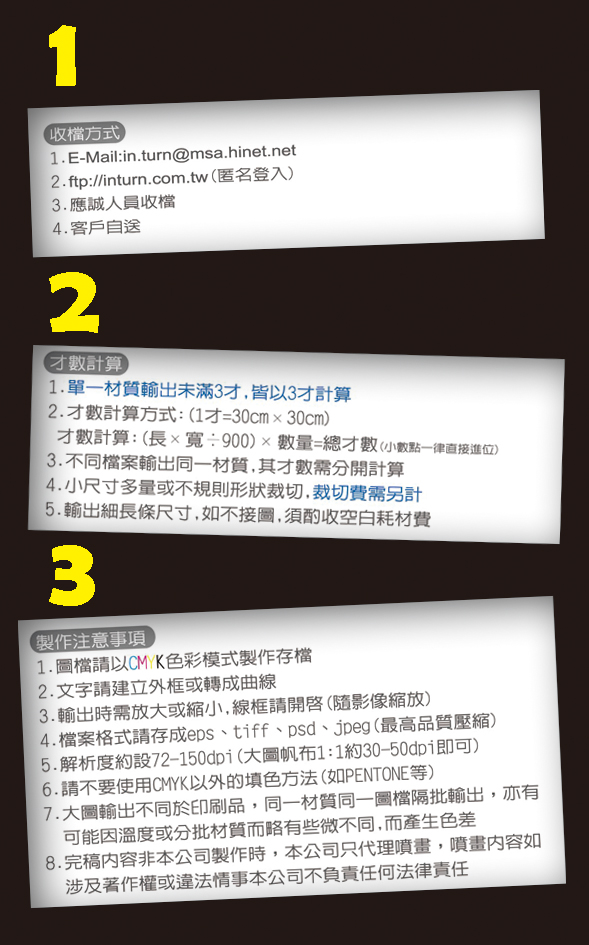 戶外帆布、立體字、車體視覺設計、玻璃貼圖、展架力牌、掛圖背板、畫框、會場布置、旗幟布條、廣告招牌、壁面大圖、燈箱燈片、壓克力展示架......等,歡迎專案設計規劃。